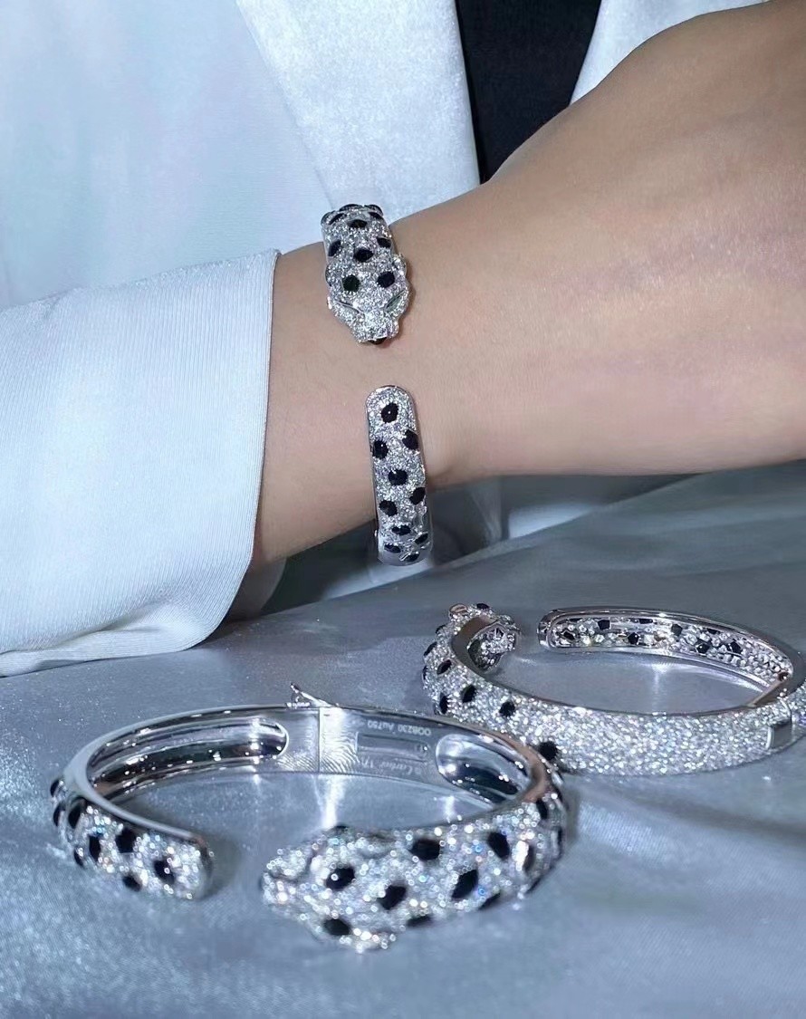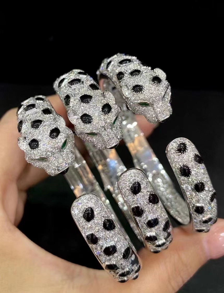 εξατομικευμένα χρυσά κοσμήματα μοντέλο Panthère de Brand 18K Gold Onyx, Emeralds Diamond Bracelet πολυτελή μάρκες κοσμημάτων διαμαντιών